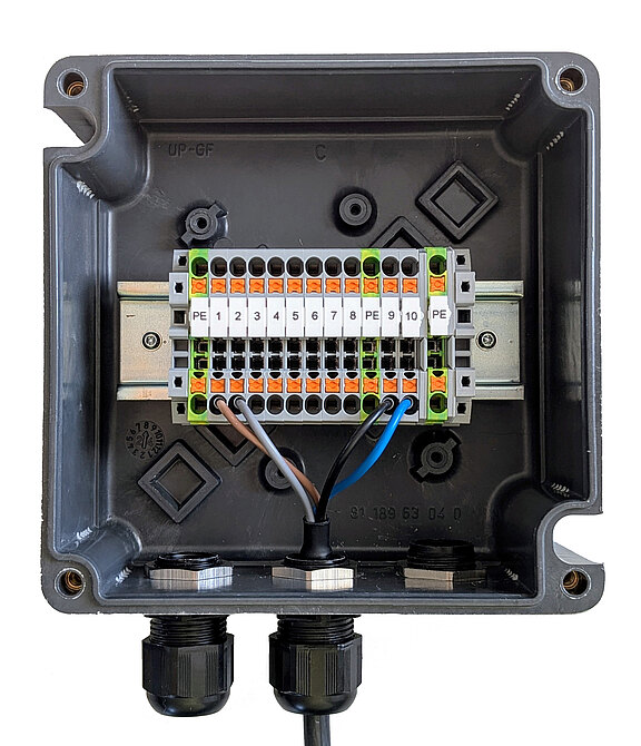 When you open the housing, pay attention that you do not damage the GYLON® flat seal (blue, RAL5012) and do not make it dirty! The flat gasket is loosely attached to the cable and power supply flange. It is fixed only by the bolted connections!