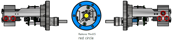 Loosen the six cylinder-head hexagon screws (DIN 912/ ISO 4762) together with their spring rings (DIN 127A) on the rear side of the cable and power supply flange. Caution: do not touch the screw threads with your skin or clothes! On the threads, there is LOCTITE® 243™ (chemical basis is dimethacrylate ester) applied to prevent the bolted connection from unintentional loosening because of impacts and vibrations.