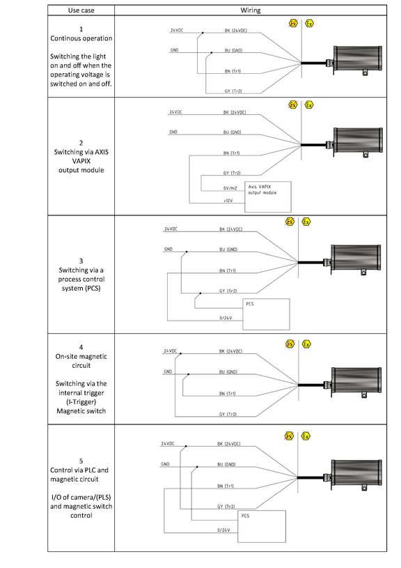 Via the black cable the illuminant is supplied with voltage. The power supply has to be done via the black (BK) as well as the blue (BU) connection strand.
