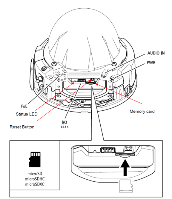The ExCam IPQ3628 has a slot for a micro SDHC memory card (card not included). Saved video files can be played and deleted via the web interface. They are also available in a download list. Moreover, the videos available in the memory card can also be accessed via FTP server in the network.If the memory card has to be replaced by the user, it should be, as far as possible, empty and pre-formatted with an ext4 or vFAT file system.